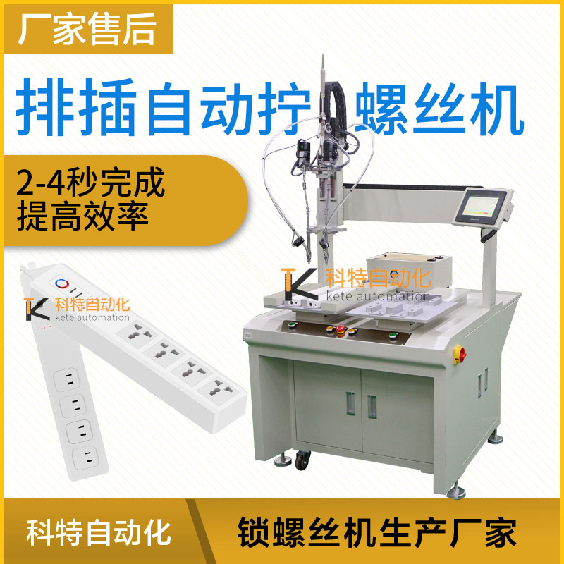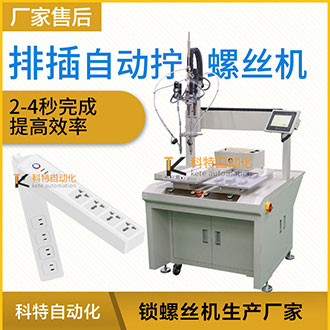 那么排插在生產(chǎn)線進(jìn)行大批量產(chǎn)品生產(chǎn)、加工、裝配時(shí),涉及到螺絲安裝的時(shí)候,需要人工手工完成,人工不僅需要對(duì)工件進(jìn)行夾緊定位,還需要人工操作提供螺絲、對(duì)螺絲進(jìn)行定位和操作手動(dòng)擰螺絲工具,對(duì)操作人員的技術(shù)方面難度加大了一點(diǎn),同時(shí)還會(huì)降低加工效率,并且也帶來了大量人工成本的提高等,針對(duì)這一問題,科特自動(dòng)化根據(jù)產(chǎn)品設(shè)計(jì)一臺(tái)自動(dòng)加擰緊工螺絲設(shè)備可以在流水作業(yè)時(shí),自動(dòng)輸送、自動(dòng)供料、自動(dòng)夾緊工件、自動(dòng)分螺絲方向、自動(dòng)定位、自動(dòng)找正螺孔、自動(dòng)扭緊的自動(dòng)加工螺絲設(shè)備,以解決人工完成上述操作帶來的產(chǎn)品一致性差、操作效率低以及人工成本高的問題。 排插的外殼體需8顆螺絲鎖付,螺絲類型為內(nèi)十字圓頭螺絲,為提高效率。